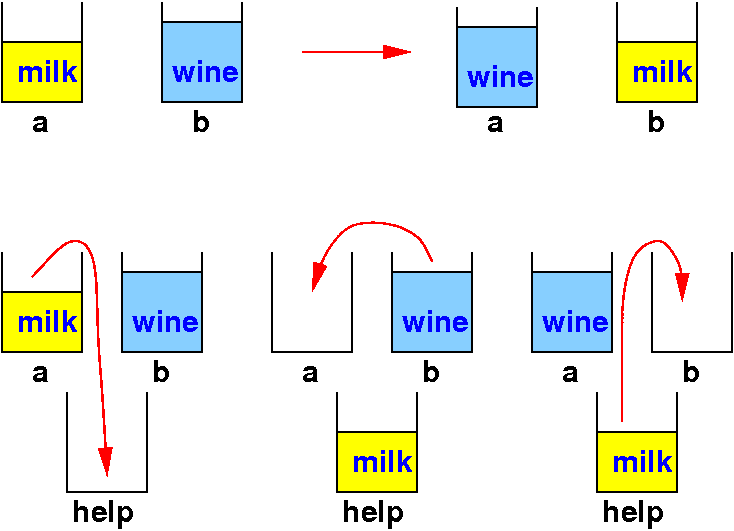 The algorithm used to exchange the values in the variables a and b: