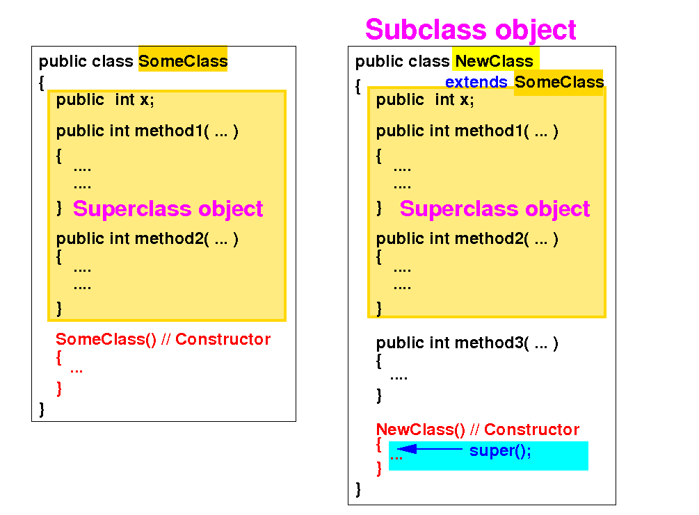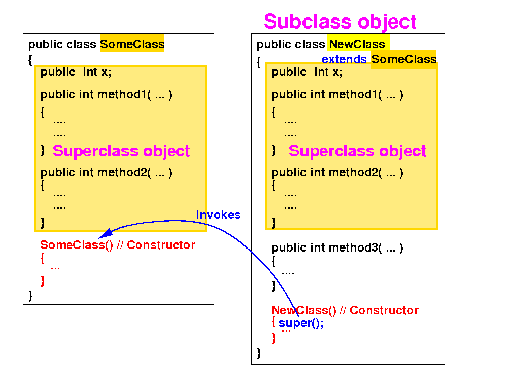 Therefore: a constructor in the subclass must invoke some constructor in its superclass as its first statement: